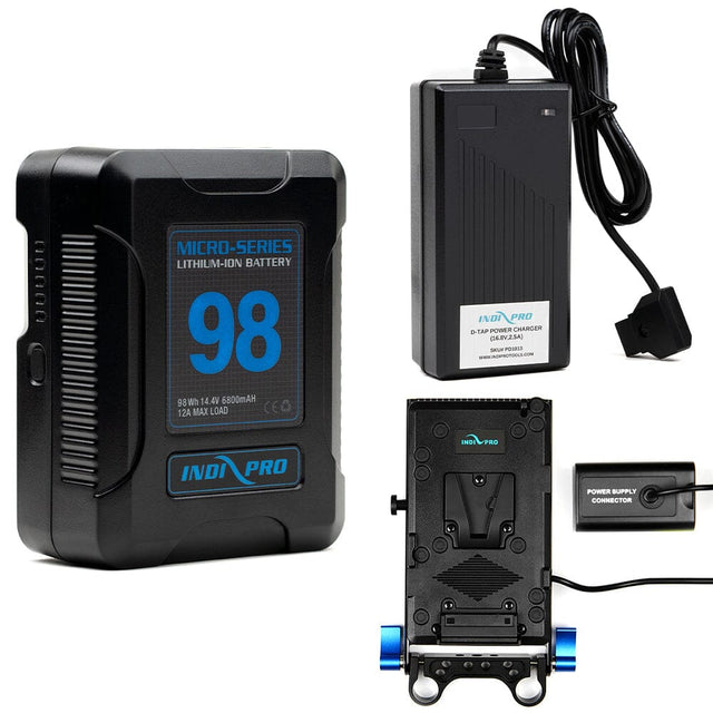 Indipro Micro Series 98Wh V-Mount Battery, Charger & V-Mount Plate to Panasonic VW-VBD58 Battery Bundle