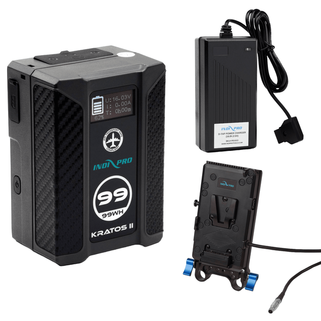 Indipro Power Bundle with 15mm V-Mount Plate for Blackmagic PYXIS (Kratos 99Wh, D-Tap Charger, V-Mount Plate for PYXIS)
