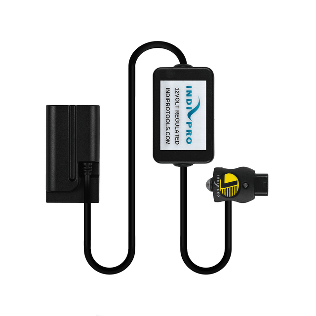 The Indipro SafeTap Power Cable to Sony L-Series (NP-F) Dummy Battery (28", Regulated) allows you to power NP-F devices from any power source with a d-tap input. This cable's SafeTap connector features integrated monitoring to protect against reverse polarity, over/undervoltage, short circuit, and deep discharging. The cable is 28” in length. It supports an input voltage range of 11 to 19V, and it outputs a power-regulated 8V. This cable features inline regulation that produces no heat and cause no video noise in the camera.