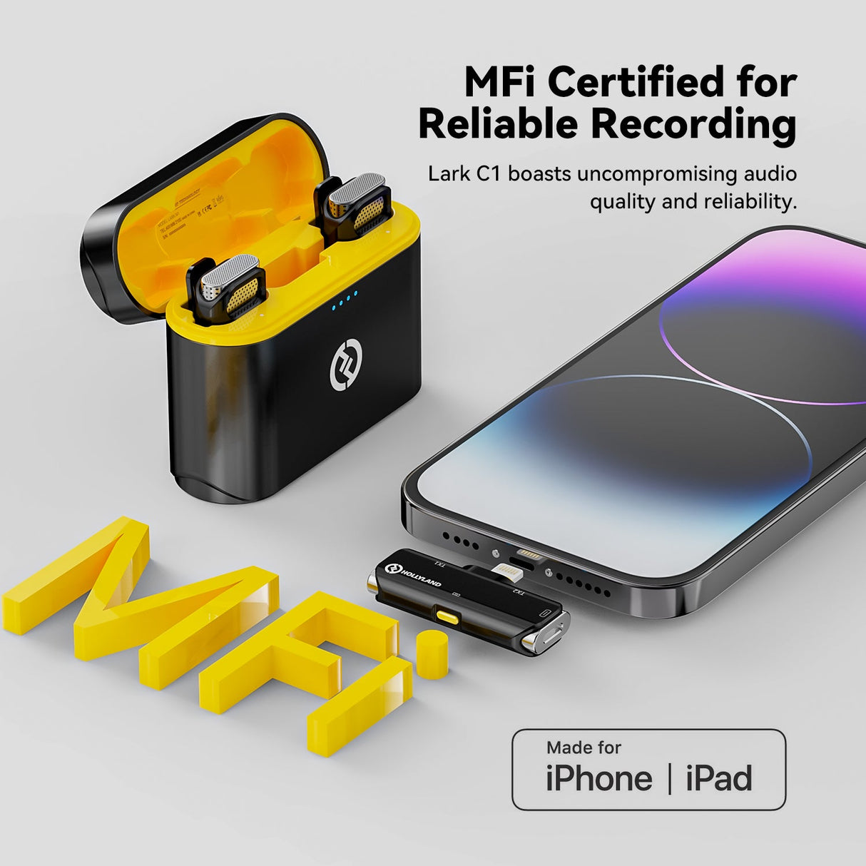 - With MFi Certification. MFi is the abbr. of made for iPhone&iPad. With this certification, the usage of Lark C1 won't affect the warranty of your iPhone. It'll be a reliable companion in your adventure of creation.