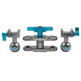 • One end secures into the magic arm and the other end features a NATO rail clamp receiver. The ball end features a blue rubber gasket for additional grip.