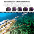 - Exposure Control for Outdoor Shots- The ND16, ND32, ND64, ND128, ND256, ND512 and ND1000 gimbal camera filters enable precise exposure control with light reduction options of 4, 5, 6, 7, 8, 9, and 10 stops, respectively. Featuring precise exposure control during dynamic outdoor activities, they effectively prevent overexposure and elevate image quality with motion blur and shallow depth of field effects across a wide range of sunlight conditions