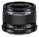 ![]() | M.Zuiko Digital 25mm f/1.8 from Olympus With a 25mm focal length and 47 degree angle of view, this lens sits right between wide and telephoto designs, making it a great choice as an all-around lens for your photography. A fast f1.8 circular aperture delivers beautifully soft defocused backgrounds for impressive portraits or when subject emphasis is the desired photographic effect. An inner focusing mechanism assures fast and accurate auto-focusing, and because it is an MSC design, it offers nearly silent focusing operation – a great feature when shooting HD movies. M.ZUIKO DIGITAL 25mmF1.8 |