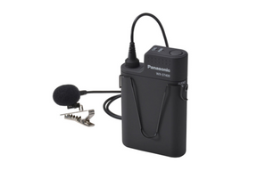 Part of Panasonic's SR200P 1.9 GHz Digital Wireless Microphone system, the WX-ST400 lavalier microphone + wireless bodypack is the perfect solution for education and/or corporate presentations. This condenser microphone is optimized for vocal clarity with Panasonic's proprietary filtering to eliminate noise yet provide clear and original sound quality with a flat frequency response. The wireless bodypack is powered by one AA standard or rechargeable battery and can be placed in the speaker’s pocket, on top of a podium or clipped to their belt. The bodypack also features a 3.5mm audio input connector, so the end user can easily use the same system to transmit audio from a local source such as a laptop. Contactless desktop charger (WX-SZ200) sold separately. Leveraging Panasonic's 20-year experience in DECT wireless audio communications, the WX-SR200P 1.9 GHz digital wireless microphone system is the best-in-class solution for classroom or corporate presentations providing low latency for hybrid in-room/virtual presentations. Panasonic's digital wireless microphone system is easy to set up, integrate with third-party control systems (such as Crestron and Extron) and easy to use. Setup is a breeze - the WX-ST400 pairs wirelessly with Panasonic's WX-SR202 receiver and assigns channels automatically, eliminating the need for manual channel assignment. The system can be expandable to suit a variety of spaces, from small classrooms, medium sized classrooms / conference rooms, to large auditoriums. Up to 8 separate antennas (per receiver) can be mounted to the wall or the ceiling in the room and connected via CAT5 back to the receiver locked away in a cabinet or closet and multiple 2-channel receivers can be installed to add wireless microphone channels to the room.