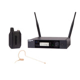 This Shure dual band wireless system comes with the GLXD4R+ half-rack receiver, the GLXD1+ bodypack transmitter and the MX153 earset microphone