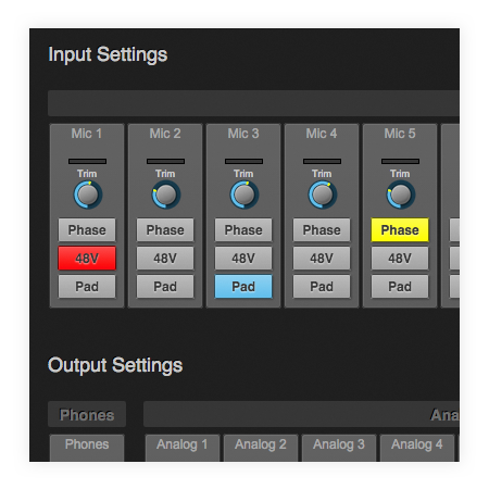 Digitally controlled analog preamp gain provides accurate adjustments in 1 dB increments from web app software running on your laptop, tablet or smartphone, with the ability to save gain settings.
