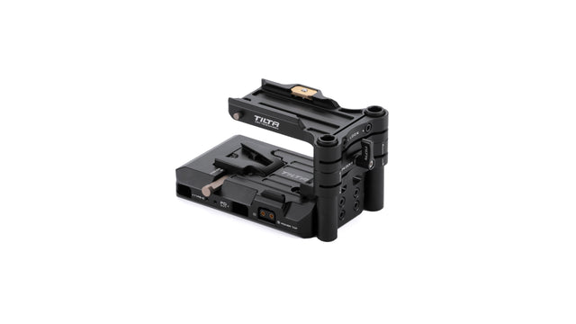 This Tilta PD V Mount Battery Baseplate connects to camera cages via an ARCA connection.