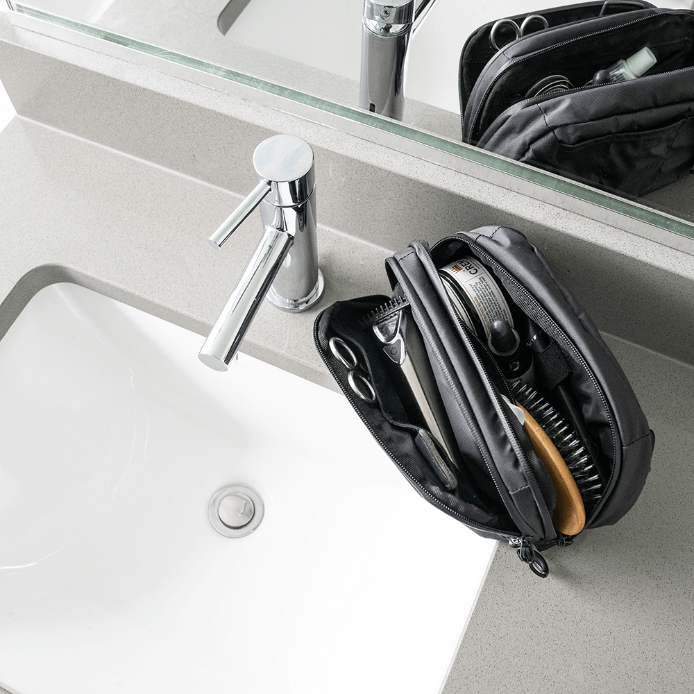 Our toiletry bags were designed with you in mind. We designed two sizes (Medium and Large) so depending on your needs we have you covered. Each size has been thoughtfully designed with unique organizational elements and built out of the highest quality materials, so your gear is easy to access and protected. Each Pouch has a unique webbing loop and clip system on its back panel so that you can connect any two together to create a mega Kit.