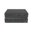 VigilLink 4x2 HDMI 2.0 Matrix with Output 4K to 1080p Downscaling and Display Control (18Gbps) This product is an 18G HDMI video switcher with 4 HDMI inputs and 2 scaling HDMI outputs. Each input and output support up to 4K60 444 HDMI 18G video. The outputs can be individually scaled for 1080p or HDBaseT compatibility. De-embedded audio as analog L+R and optical TosLink is available for both outputs. The Matrix Switcher can automatically control the display device using RS232, CEC, or IR when the last input signal is lost, or the first video input is detected. This switcher can be controlled from the front panel, RS232, IR, or LAN. Features HDMI 2.0, HDCP 2.2 / HDCP 1.4, and DVI 1.0 compliant / Four 18G HDMI 2.0 video inputs supporting up to 4K60 444 resolution / Two 18G HDMI 2.0 video outputs supporting up to 4K60 444 resolution / Both outputs can be individually scaled for 4K ™1080p or HDBaseT mode / Automatic RS232, CEC, and IR control of the display device power state / Two sets of de-embedded audio analog and TosLink outputs for both outputs / ARC decoding to the TosLink audio outputs only / Test Pattern mode for testing output signal integrity to the display / Built-in Web GUI for LAN control / Four methods of control: Front panel, RS232, IR, and LAN